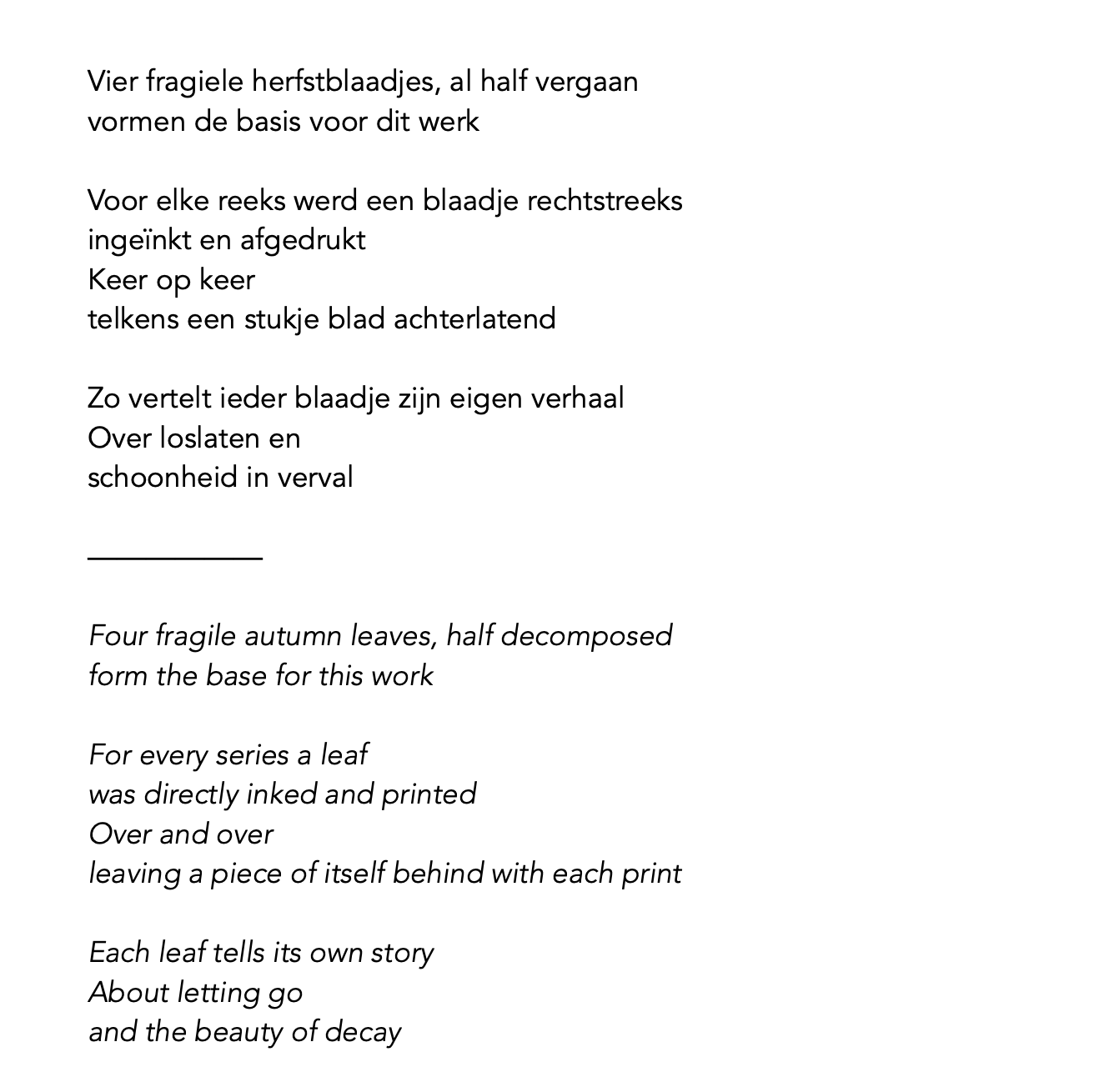 Hoe ga ik om met de angst om te verdwijnen? Mijn drang naar antwoorden leidde tot een zoektocht naar verbinding tussen leven en afscheid. Naar datgene wat niet altijd uitgesproken of gezien wordt, maar er zo overduidelijk is. Naar de schoonheid van het verval.